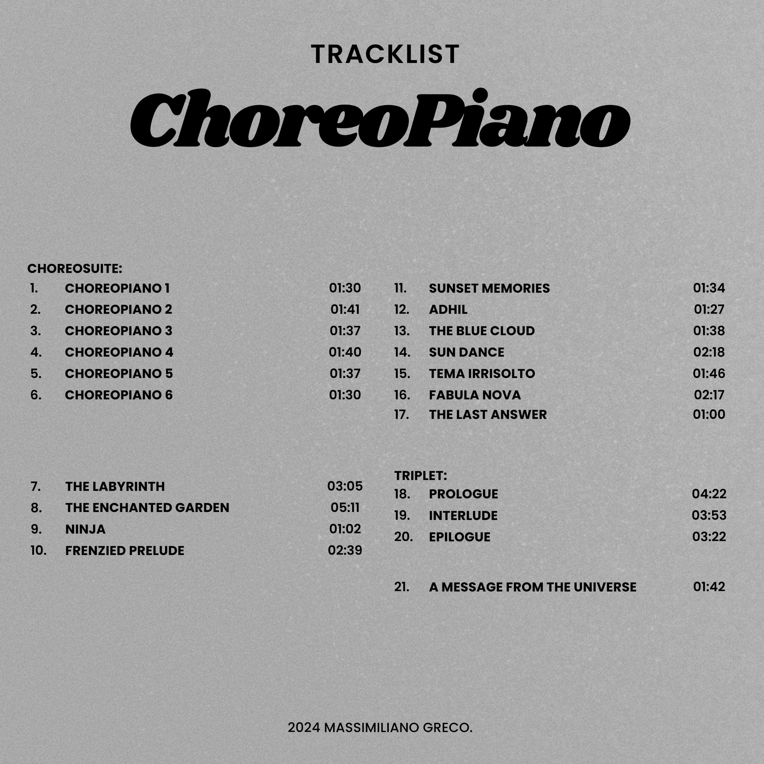 Massimiliano Greco: Choreopiano – Music for Choreography – Download